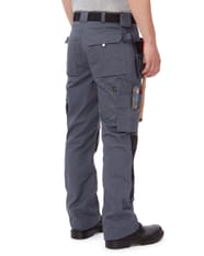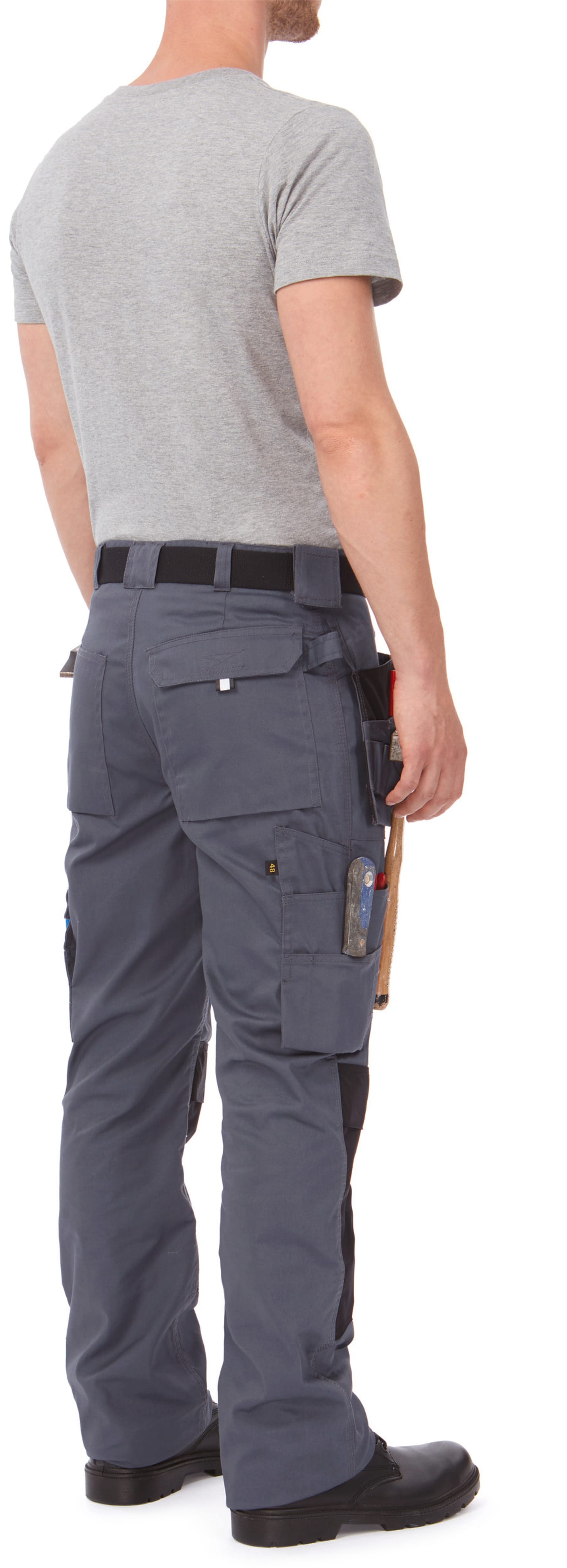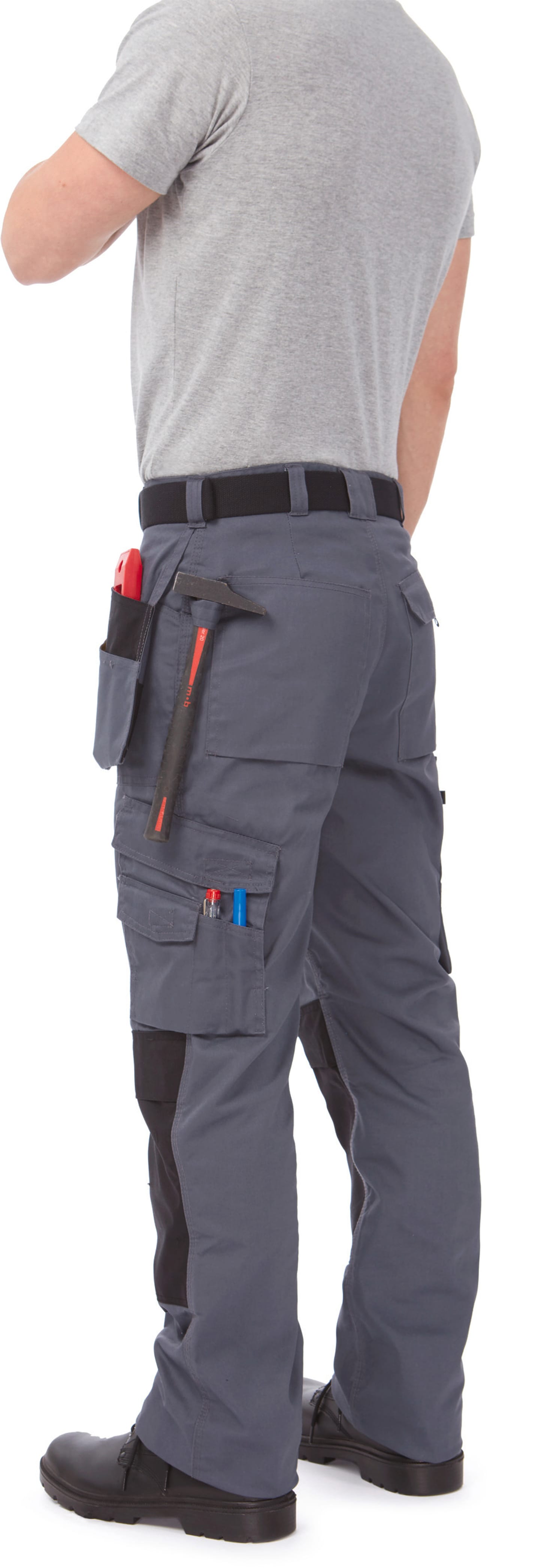 65% polyester / 35% coton peigné Twill avec coutures renforcées aux points de tension. Poches ajustables pour genouillères avec rabat et fermeture Velcro et renforcées en Cordura®. Poche mètre semi volante avec compartiment extérieur et boucle pour marteau. Larges poches volantes, avec multiples compartiments extérieurs, renforcées en Cordura®. Poches profondes plaquées pour insertion aisée des poches volantes en cas de non-utilisation. Multiples poches côté et arrière, à soufflet et rabat avec Velcro, avec système d'attache Velcro. Elastique au dos pour ajustement de la ceinture. Passant de ceinture plus large à l'arrière. Ourlet de bas de pantalon élargi pour un meilleur ajustement à la longueur de jambes (allonge 5 cm). Anneau pour attache badge, clés ou autres. Zip YKK®. Bouton de rechange. Résistance à l'abrasion et au déchirement. Lavable en machine à 60° et convient au sèche-linge.
