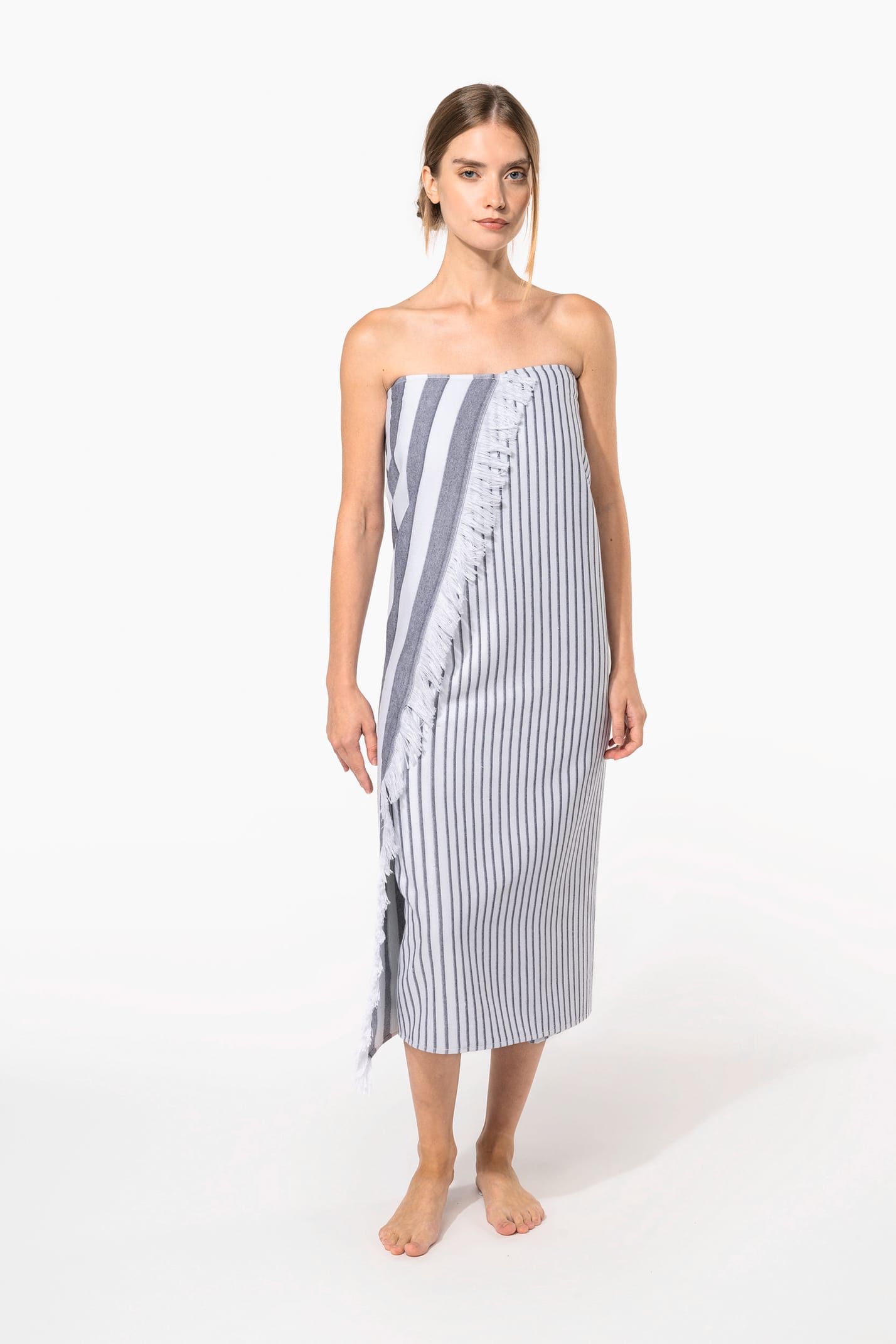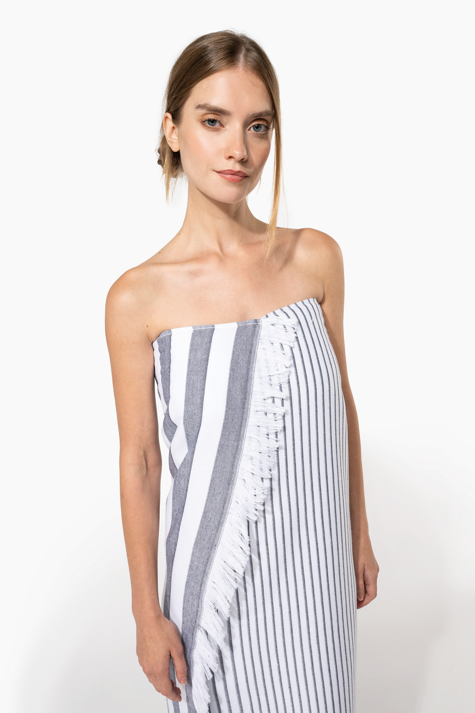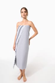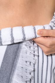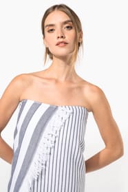 100% coton. Dimensions : 100 x 180 cm. 1 face en coton tissé jacquard et 1 face éponge.
