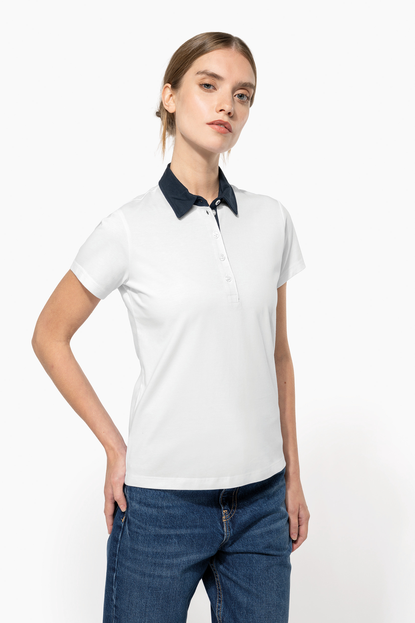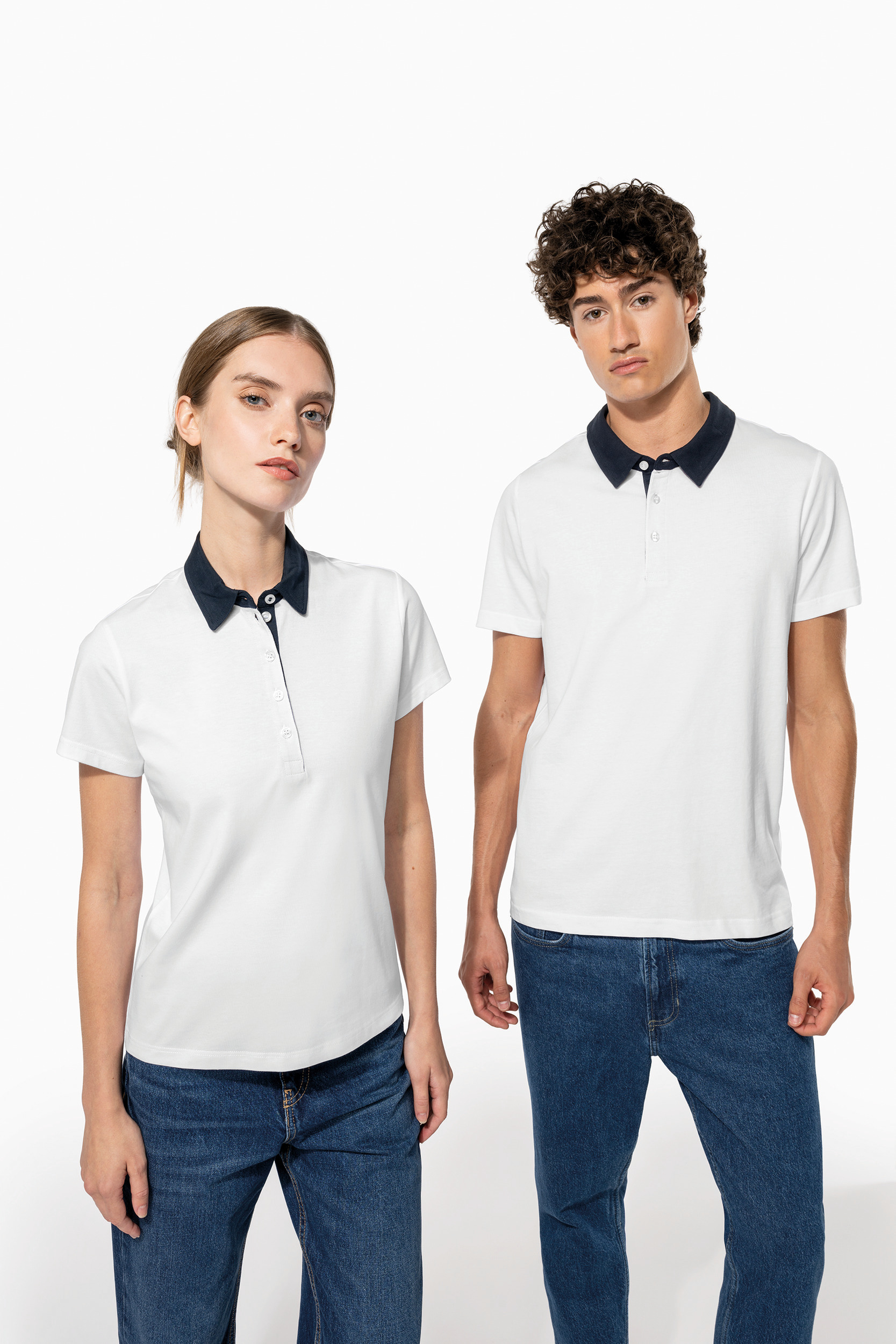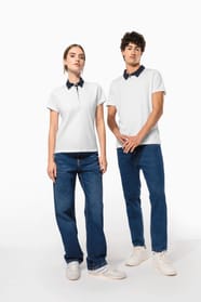 100% coton (65% polyester / 35% coton pour coloris chiné). Maille jersey en coton peigné avec lavage aux enzymes. Col chemise et intérieur patte contrastés avec 5 boutons blanc nacré. Finition double aiguille bas de manches et bas de vêtement.