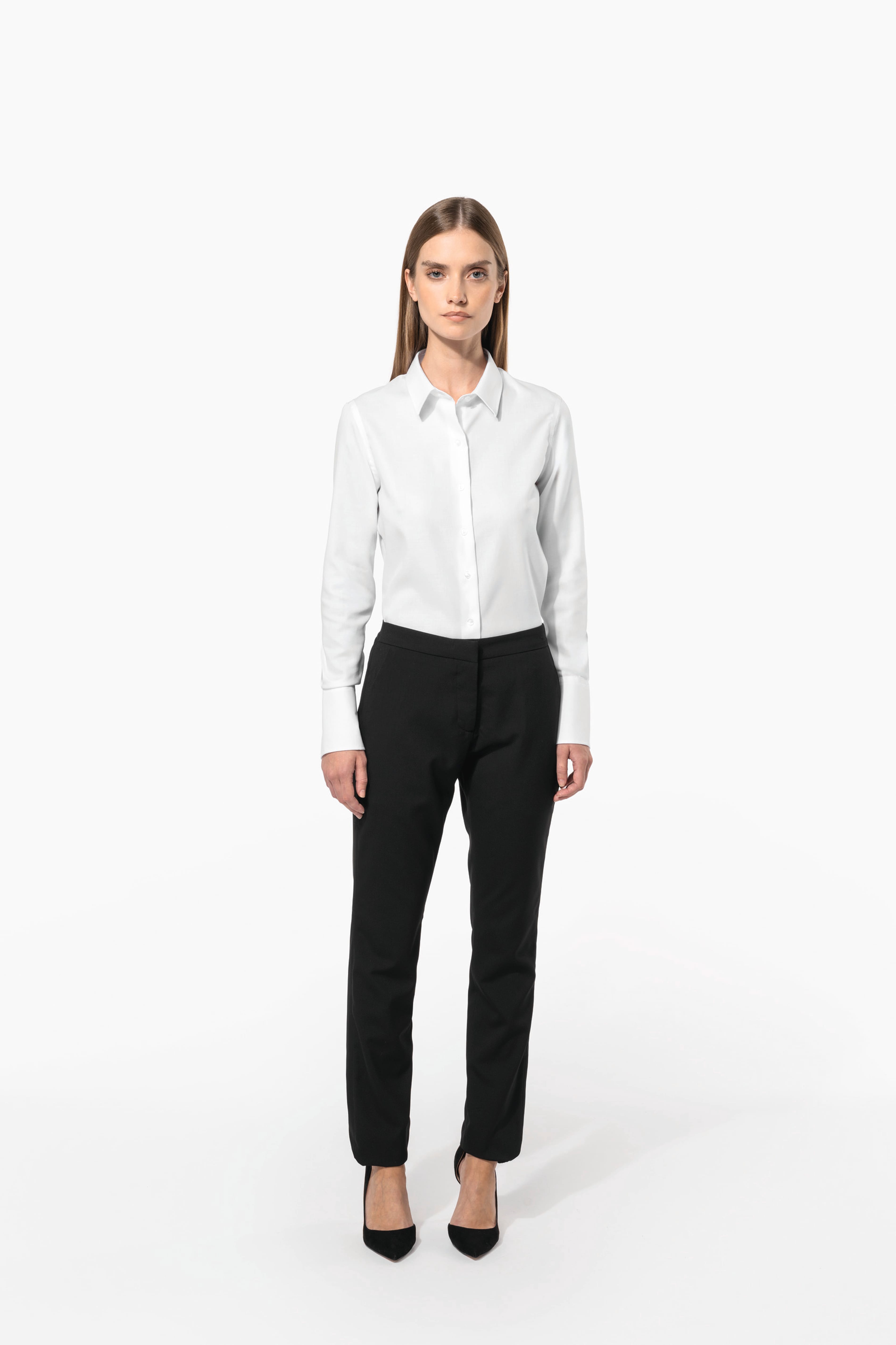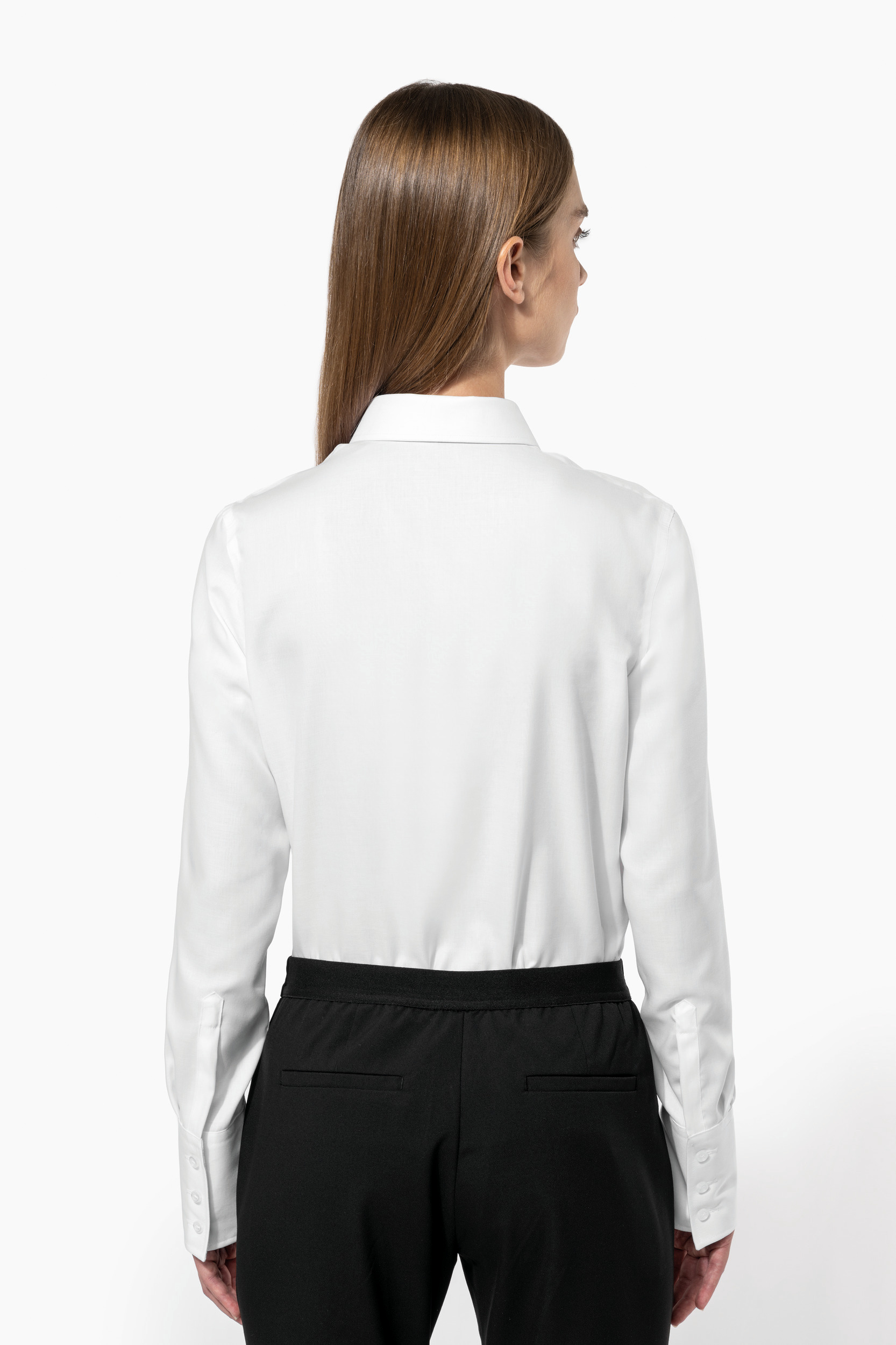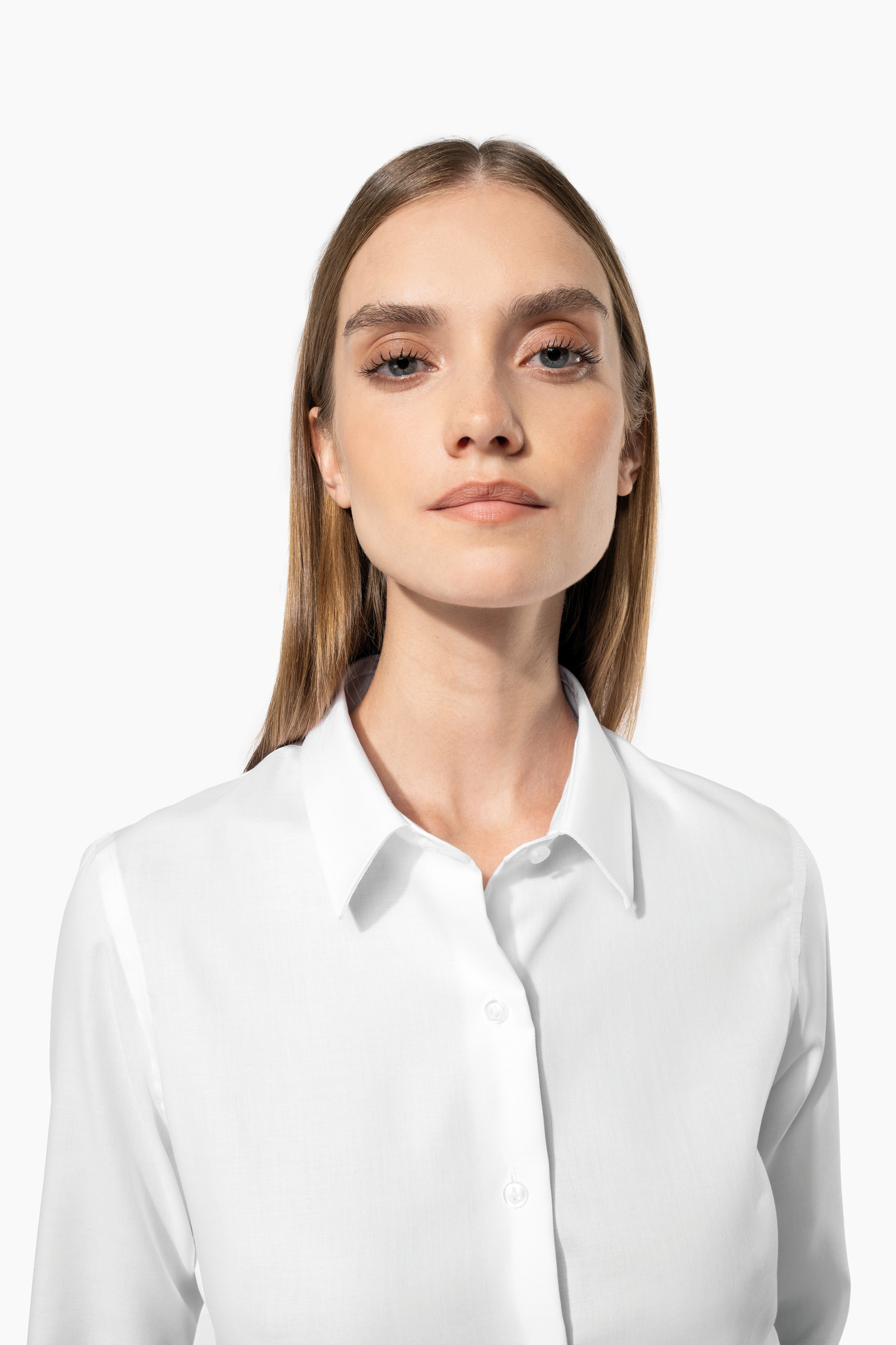 100% coton micro sergé. Tissu nouvelle technologie sans repassage. Col non boutonné. Boutons ton sur ton. Large poignet à 3 boutons avec patte de manche capucin. Finition coutures rabattues. 1 bouton de rappel. Bas arrondi.