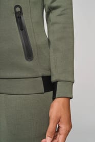 94% polyester / 6% élasthanne (79% polyester / 15% viscose / 6% élasthanne pour coloris chiné). Coupe cintrée. Matière ultra confortable. Fermeture zippée. 2 poches avant zippées finition thermosoudée. Bas de manches et de vêtement resserrés avec une partie élastiquée Black sur tous les coloris et Dark Grey sur le Ash Heather (fermetures aussi).. Idéal pour être porté avec le pantalon de survêtement PA1009 dans un style total Urban Apparel.