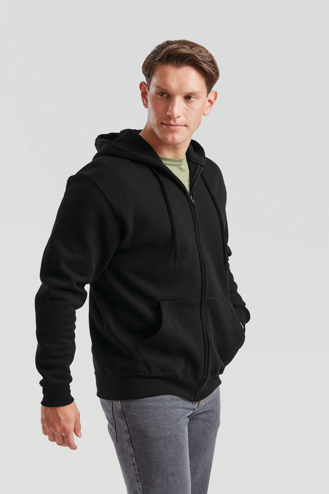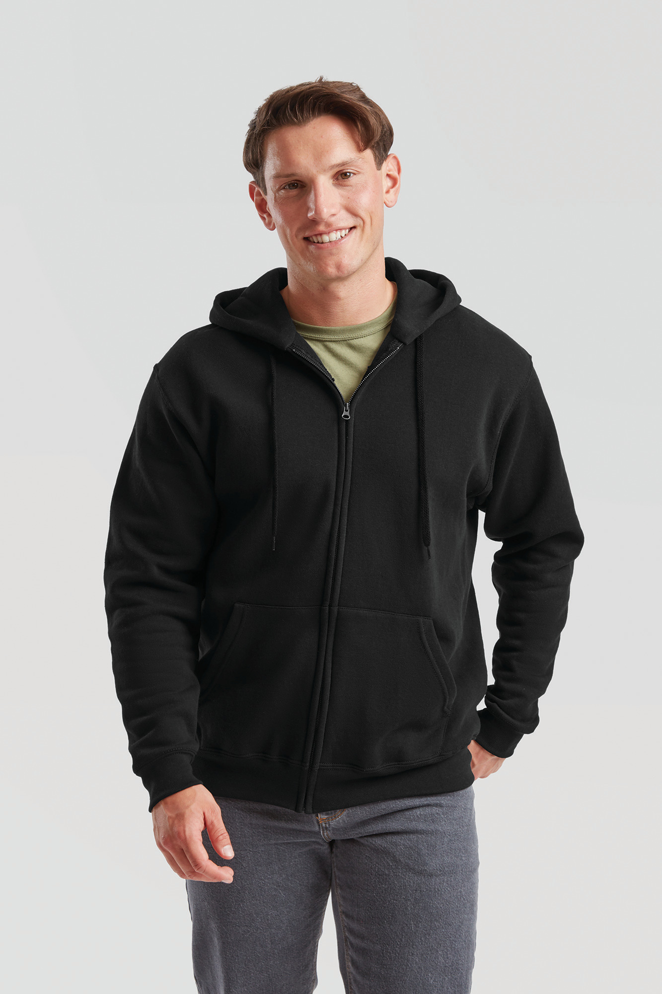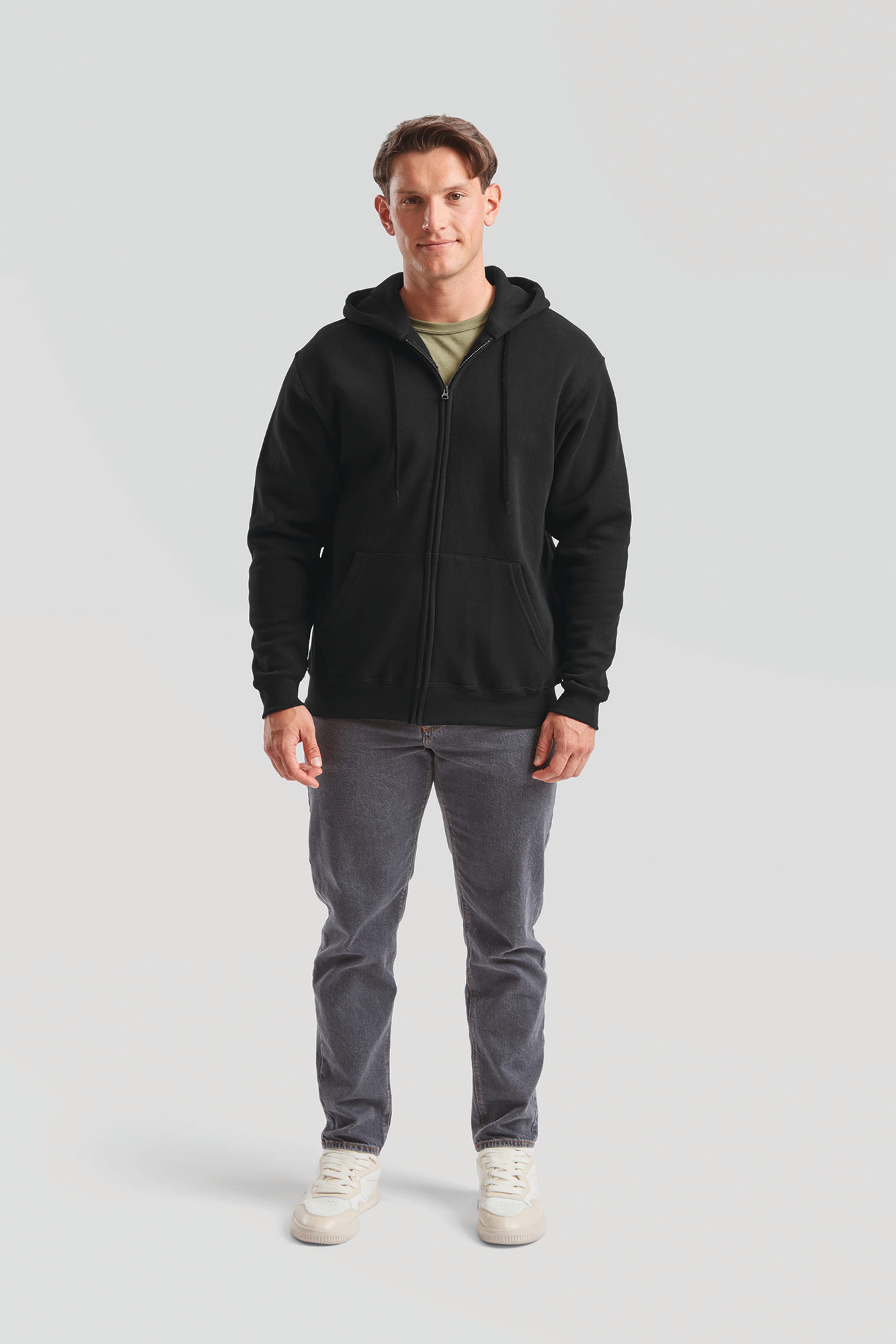 Sauf Heather Grey - 260 g/m². 80% coton / 20% polyester (Dark Heather Grey 60% coton / 40% polyester). Capuche doublée avec bande de propreté en jersey et cordons plats ton sur ton. 2 poches Kangourou. Taille et poignets avec bord-côte en coton / Lycra®. Zip recouvert sur toute la longueur.